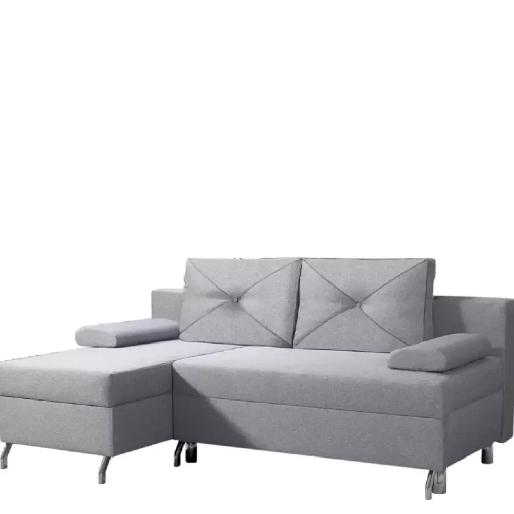 - W wersji standardowej narożnik rozkładany jest „na kółkach”, dopłacając do wersji z mechanizmem „DL”, otrzymują państwo dodatkowy obszerny pojemnik na pościel umieszczony pod wysuniętą leżanką, a także mechanizm, który ochroni waszą podłogę przed ewentualnymi uszkodzeniami.