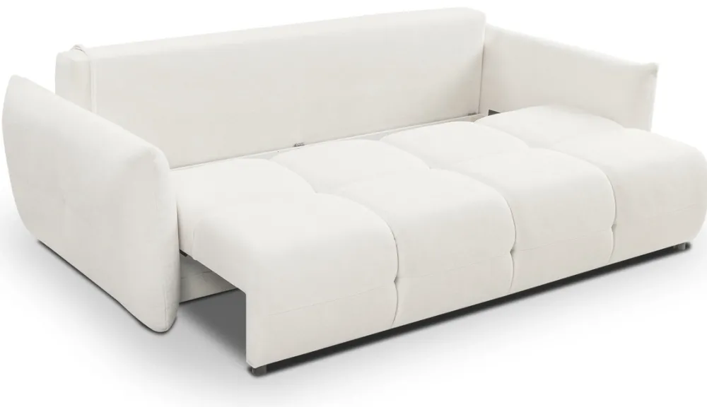Automat DL umożliwia szybkie i bezproblemowe rozłożenie sofy do funkcji spania. W kilka sekund stworzysz wygodną powierzchnię, idealną na nocleg dla gości lub chwilę drzemki w ciągu dnia. Pojemnik na pościel pod siedziskiem to praktyczne rozwiązanie, które pozwoli Ci przechowywać koce, poduszki czy pościel, dbając o porządek w salonie.