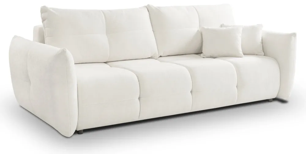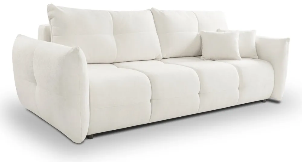 Siedzisko wypełnione pianką PUR zapewnia nie tylko miękkość, ale także optymalne wsparcie ciała, dzięki czemu każda chwila spędzona na sofie staje się prawdziwym relaksem. Dwie duże poduszki oparciowe i dwa urocze jaśki dopełniają komfort, oferując idealne warunki zarówno do siedzenia, jak i leżenia.