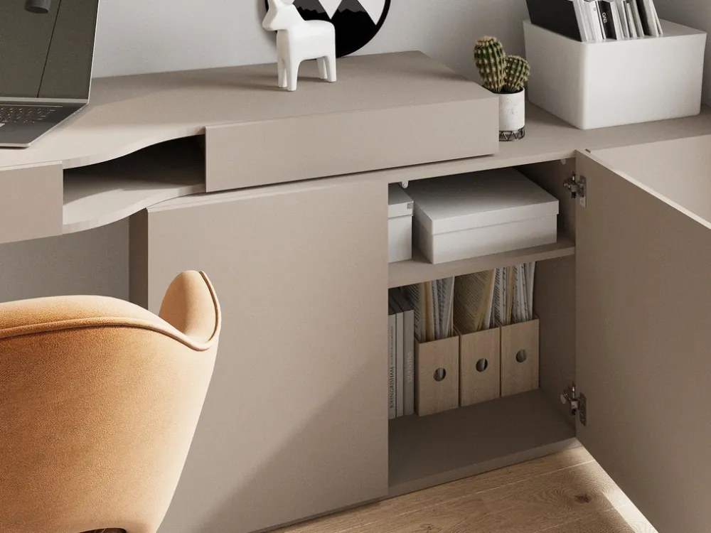 - Nowoczesna komoda do pokoju młodzieżowego – minimalistyczny styl i stonowana kolorystyka clay gray