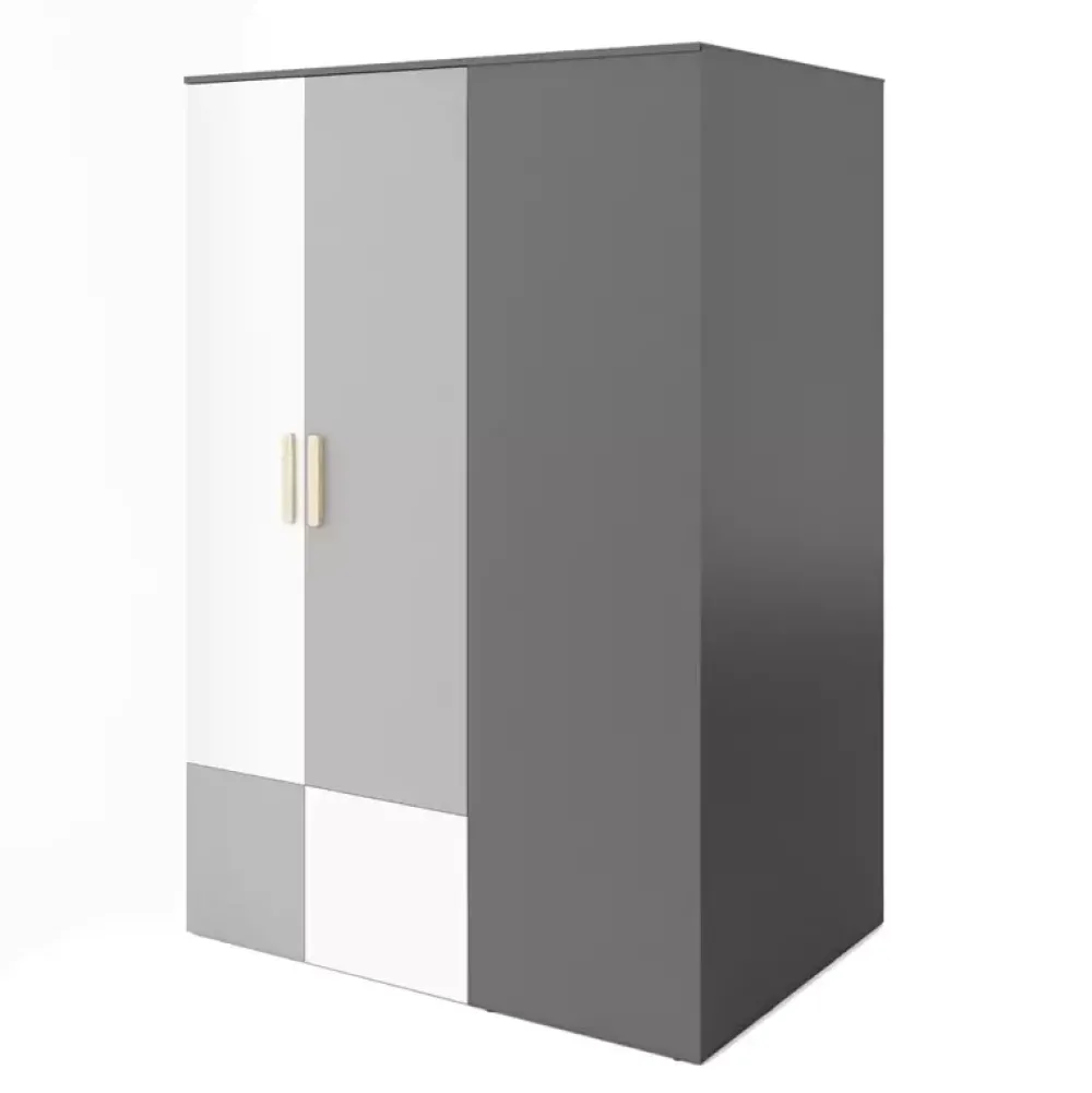 Narożna szafa młodzieżowa POK to pojemna propozycja przeznaczona dla osób poszukujących miejsca pozwalającego przechować znaczną część lub wszystkie elementy własnej garderoby. Została wyposażona w parę drzwi umieszczonych na zawiasach puszkowych, po których otwarciu automatycznie włącza się subtelne oświetlenie LED znajdujące się u góry.