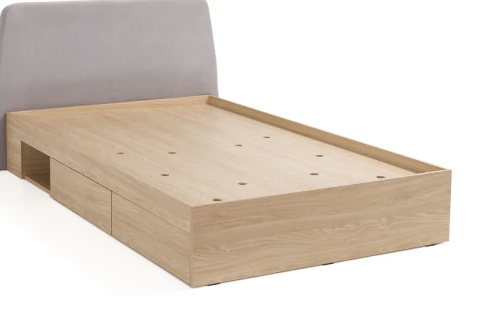 - Z boku łóżka oprócz wnęki znajdują się dwie szuflady. Stronę, po której znajdują się szuflady, można wybrać podczas montażu.