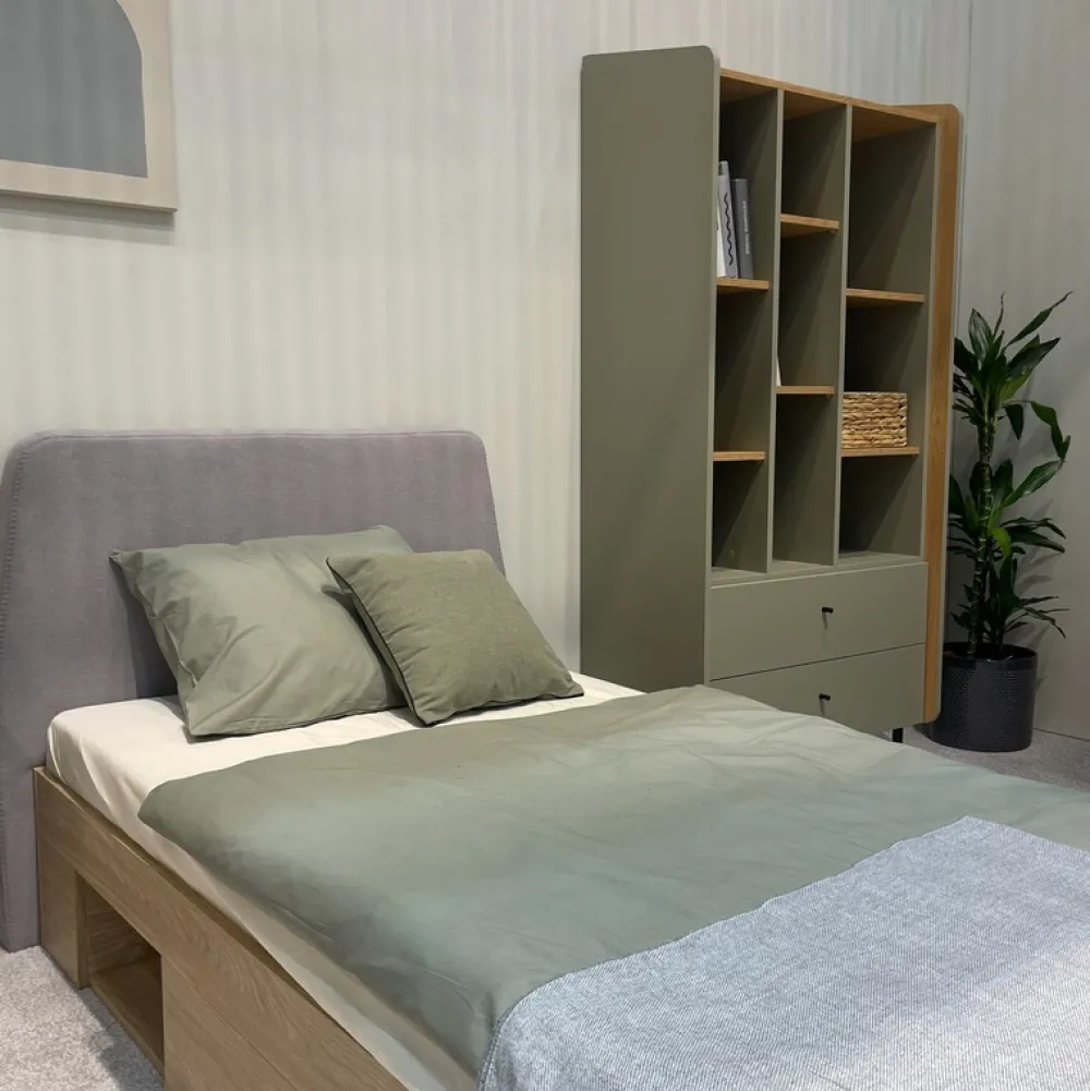 Łóżko wyróżnia się tapicerowanym zagłówkiem, który zapewnia wygodne oparcie podczas czytania, nauki czy relaksu. Miękka tapicerka wprowadza do pokoju przytulność i elegancję, a jej nowoczesny design świetnie komponuje się z kolorystyką mebla. Młodzieżowe łózko zostało wykonane z trwałej płyty laminowanej w kolorze dąb olejowany, łóżko 120×200 cm charakteryzuje się solidnością i naturalnym urokiem, który nadaje wnętrzu ciepłego, ponadczasowego charakteru.