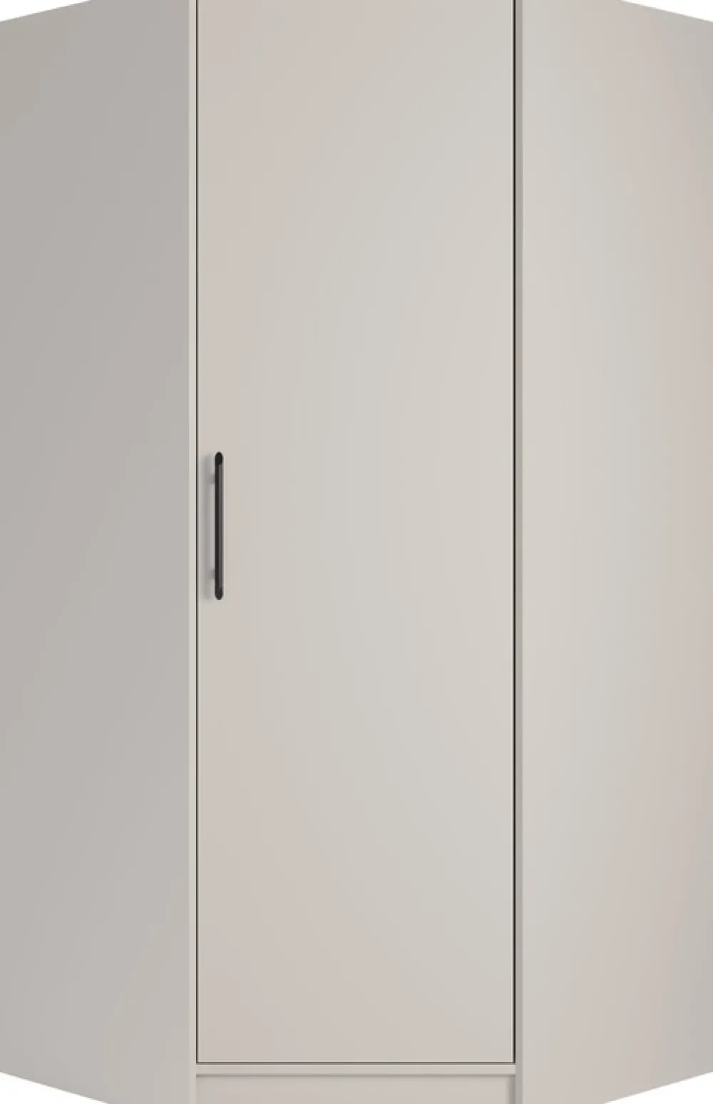 - Szafa narożna SEVAS kaszmir 95×95 cm – z półkami i drążkami. Idealna do małych pomieszczeń: sypialni, garderoby lub przedpokoju. Nowoczesny kolor kaszmir i kompaktowa forma zapewniają stylowy wygląd i maksymalne wykorzystanie przestrzeni.