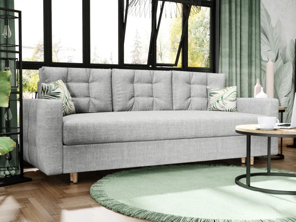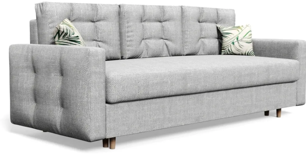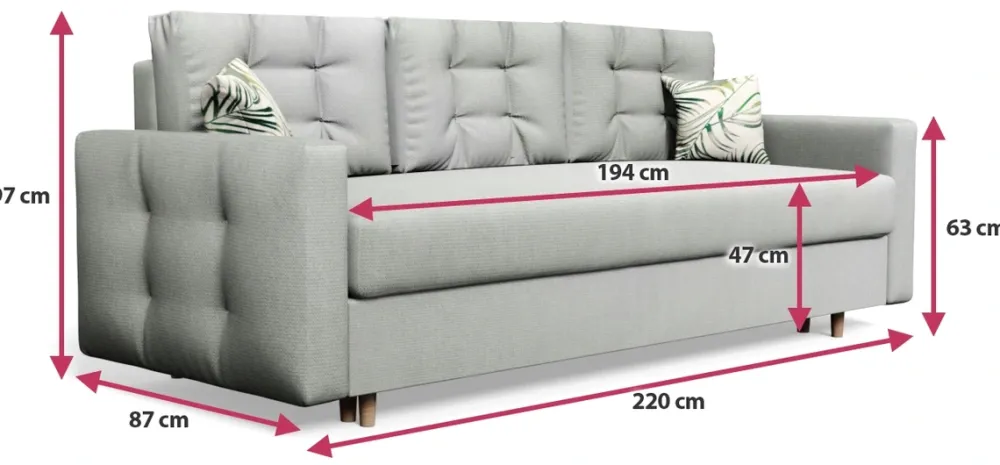 - Nowoczesna kanapa z funkcją spania PRIMELO. Kanapa do salonu posiada drewniane nóżki, głęboki pojemnik na pościel, a także trzy duże poduchy oparciowe. Kanapa rozkłada się za pomocą automatu DL. Funkcja spania o powierzchni 194 × 140 cm.