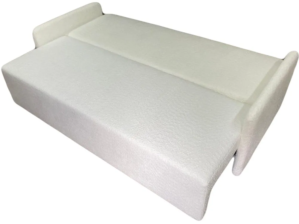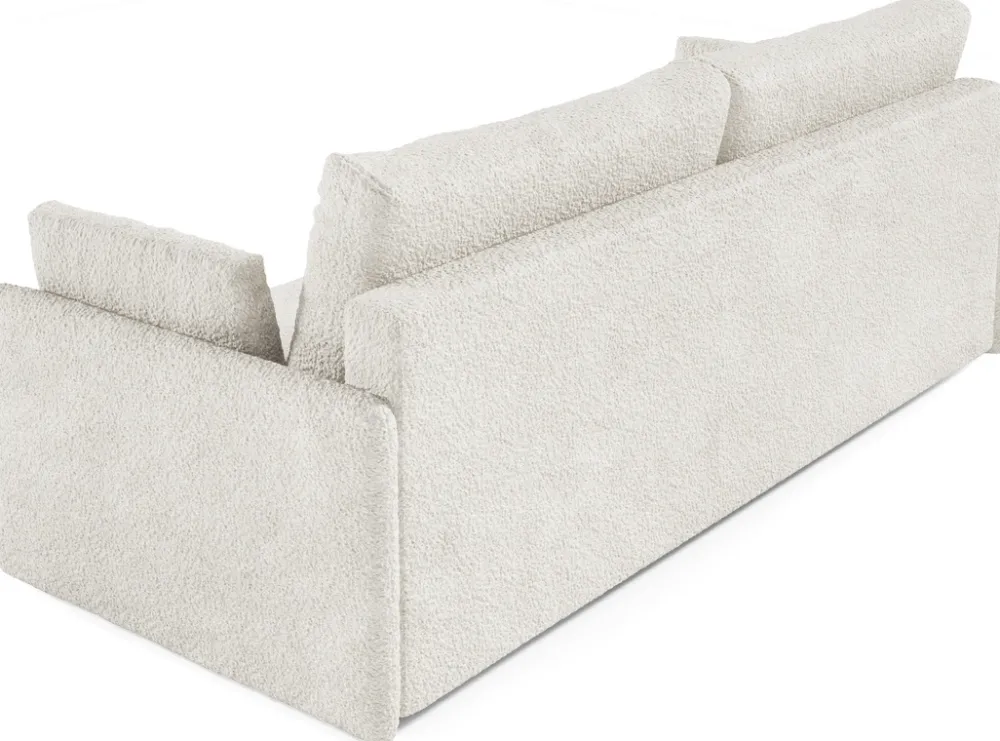 - Sofa z funkcją spania widoczna w ofercie została wykonana w tkaninie typu „baranek” Abriamo 04. Tanina ta jest łatwa w pielęgnacji i utrzymaniu czystości. Cechuje się trwałością, a także odpornością na plamy i zabrudzenia, co ułatwia jej codzienne czyszczenie. W przypadku mniejszych zabrudzeń wystarczy zazwyczaj delikatne oczyszczenie wodą z łagodnym detergentem.