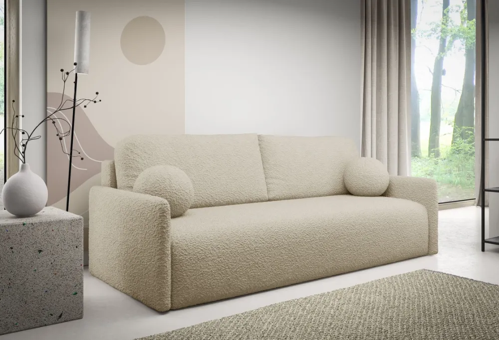 - Rozkładana sofa z funkcją spania CLOUD. Mebel wykończony został tkaniną typu baranek. Sofa do salonu zaskoczy Cię także głębokim pojemnikiem na pościel, automatem DL ułatwiającym rozkładanie, a także kompletem miękkich poduch.