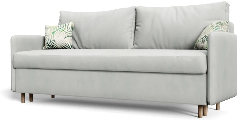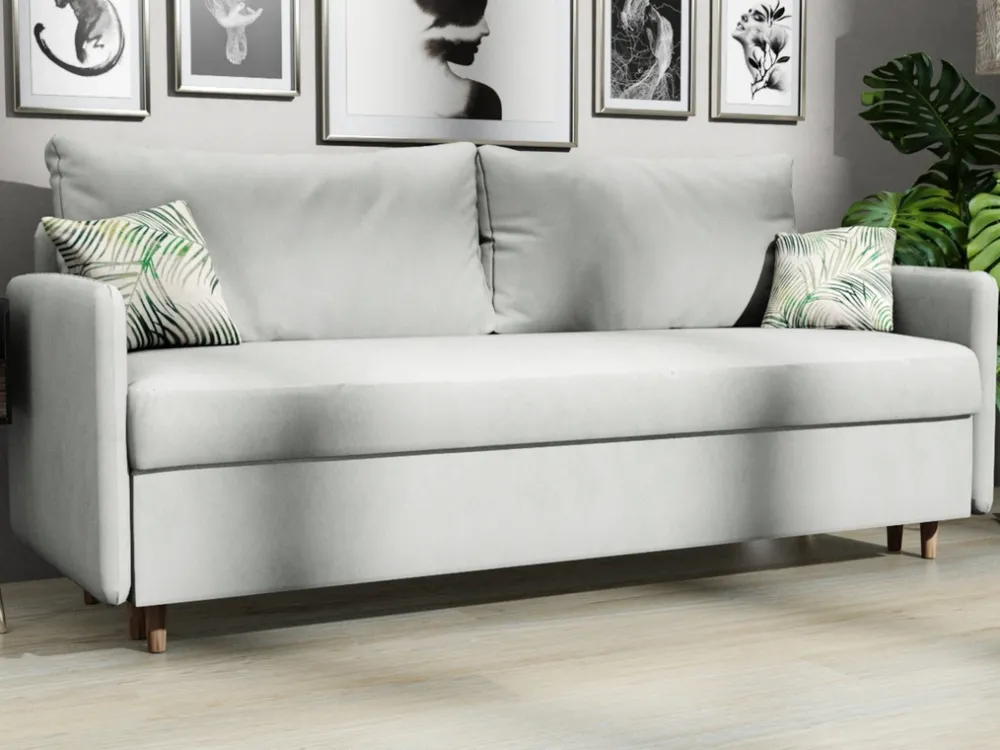 - Nowoczesna trzyosobowa kanapa rozkładana BRAVO. Kanapa do salonu posiada wysokie drewniane nóżki, głęboki pojemnik na pościel, a także dwie duże poduchy oparciowe. Kanapa rozkłada się za pomocą automatu DL.