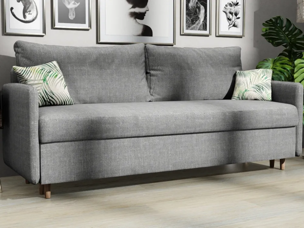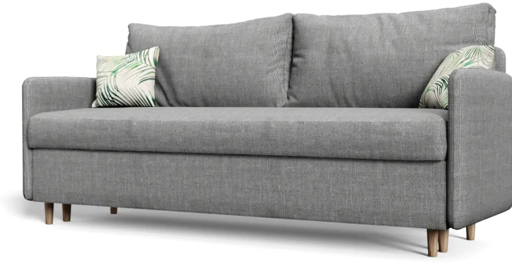 - Trzyosobowa kanapa rozkładana BRAVO. Kanapa do salonu posiada wysokie drewniane nóżki, głęboki pojemnik na pościel, a także dwie duże poduchy oparciowe. Kanapa rozkłada się za pomocą automatu DL.