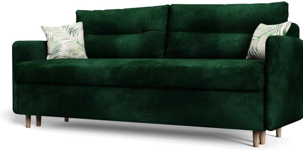 - Trzyosobowa sofa rozkładana SOFRANA wyposażona została w funkcje spania oraz głęboki pojemnik na pościel. Nóżki sofy wykonane są z drewna. Sofa do salonu zaskoczy Cię ozdobnymi przeszyciami, a także eleganckim designem.