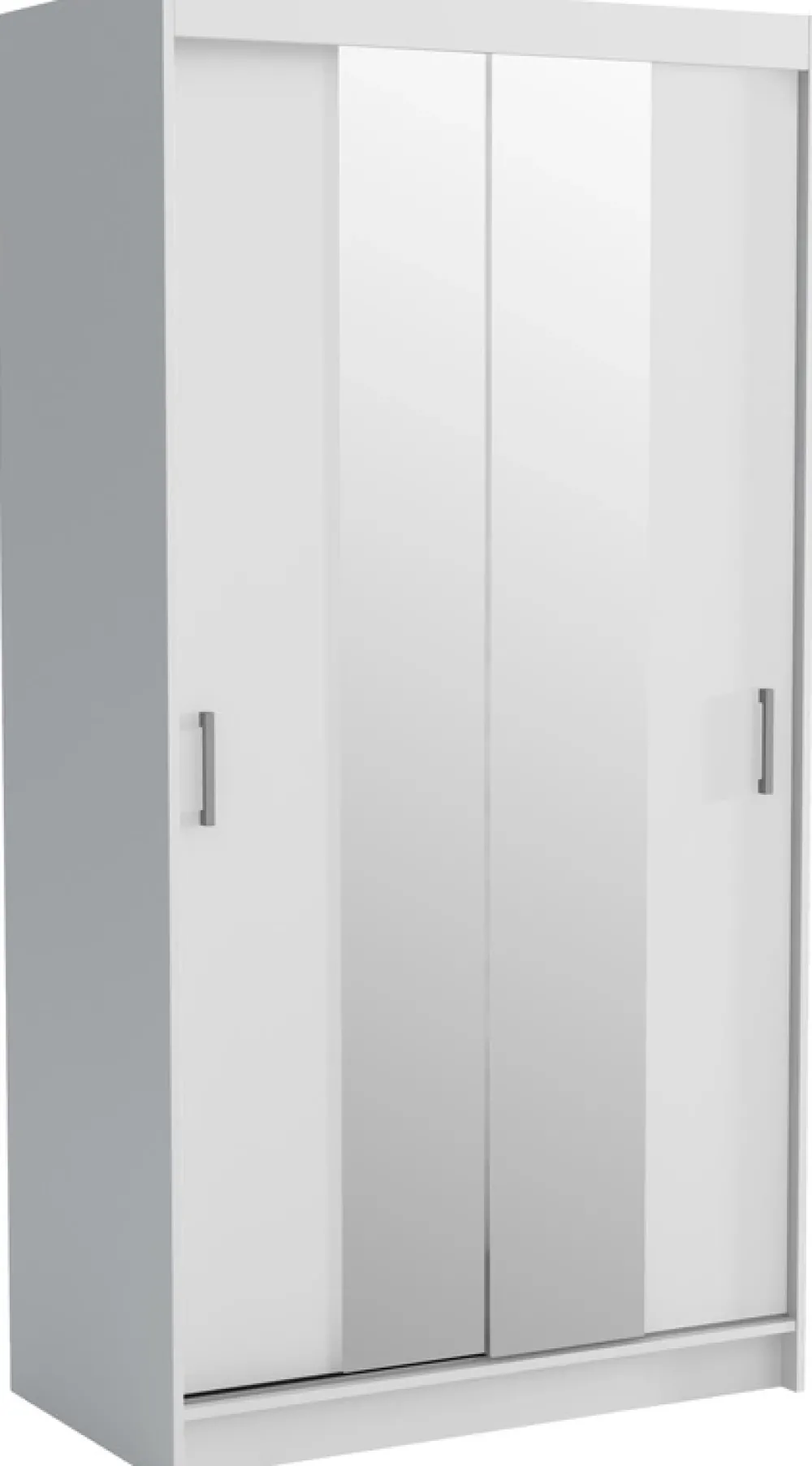 - Biała szafa przesuwna z lustrem 110 cm NASTE to propozycja na wyposażenie mieszkania w nowoczesnym stylu. Szafa posiada pięć półek na ubrania, aluminiowy drążek na wieszaki oraz parę drzwi przesuwnych z lustrem, które optycznie powiększa i rozjaśnia pokój