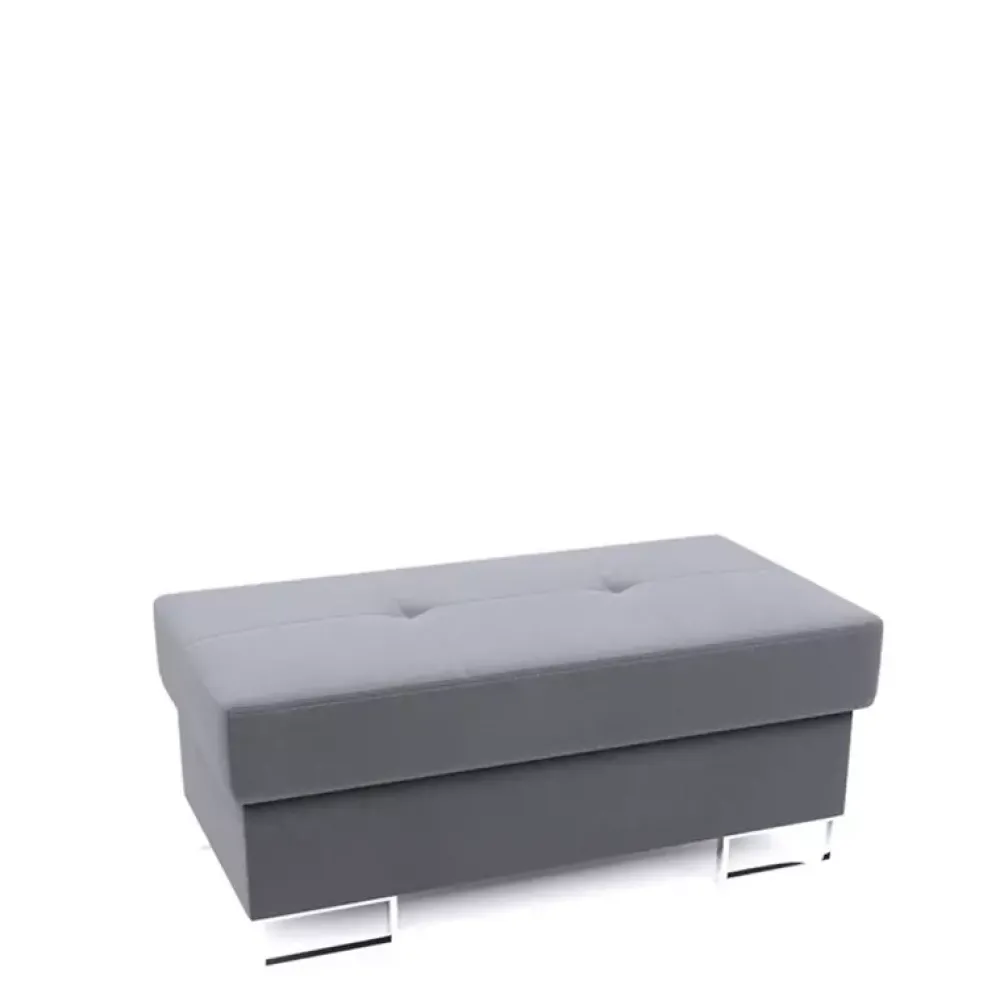 Wielofunkcyjna pufa, siedzisko do przedpokoju, podnóżek. Wykonana z wysokiej jakości materiałów w postaci konstrukcji stworzonej przy użyciu drewna oraz płyty meblowej, oraz siedziska wykonanego ze sprężyn falistych, pod którym znalazł się dodatkowy pojemnik.