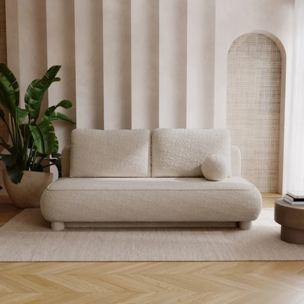 Obicie z modnej tkaniny boucle (baranek) zachwyca swoją strukturą i subtelnym połyskiem. Jej miękkość i wyczuwalna tekstura nie tylko podnoszą komfort użytkowania, ale także dodają wnętrzu przytulności i eleganckiego charakteru. To idealne rozwiązanie dla osób ceniących modne, a zarazem ponadczasowe wykończenia.