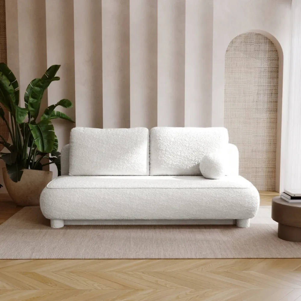 Obicie z modnej tkaniny boucle (baranek) zachwyca swoją strukturą i subtelnym połyskiem. Jej miękkość i wyczuwalna tekstura nie tylko podnoszą komfort użytkowania, ale także dodają wnętrzu przytulności i eleganckiego charakteru. To idealne rozwiązanie dla osób ceniących modne, a zarazem ponadczasowe wykończenia.