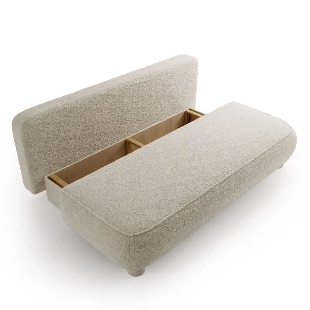 Funkcja spania oparta na systemie rolek pozwala w kilka chwil zamienić kanapę w pełnowymiarowe łóżko o powierzchni 194 × 140 cm. Dodatkowa skrzynia na pościel pomoże Ci zaoszczędzić miejsce, zachowując estetykę wnętrza.