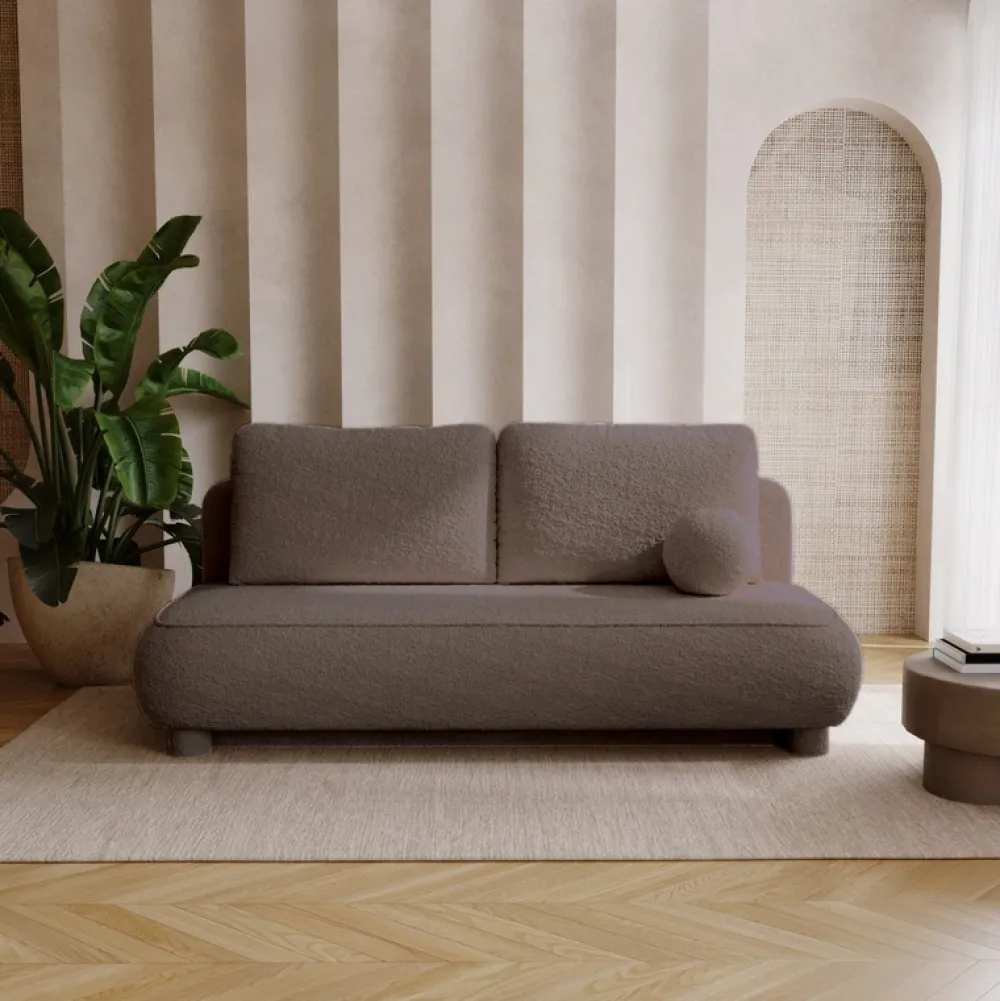 Obicie z modnej tkaniny boucle (baranek) zachwyca swoją strukturą i subtelnym połyskiem. Jej miękkość i wyczuwalna tekstura nie tylko podnoszą komfort użytkowania, ale także dodają wnętrzu przytulności i eleganckiego charakteru. To idealne rozwiązanie dla osób ceniących modne, a zarazem ponadczasowe wykończenia.
