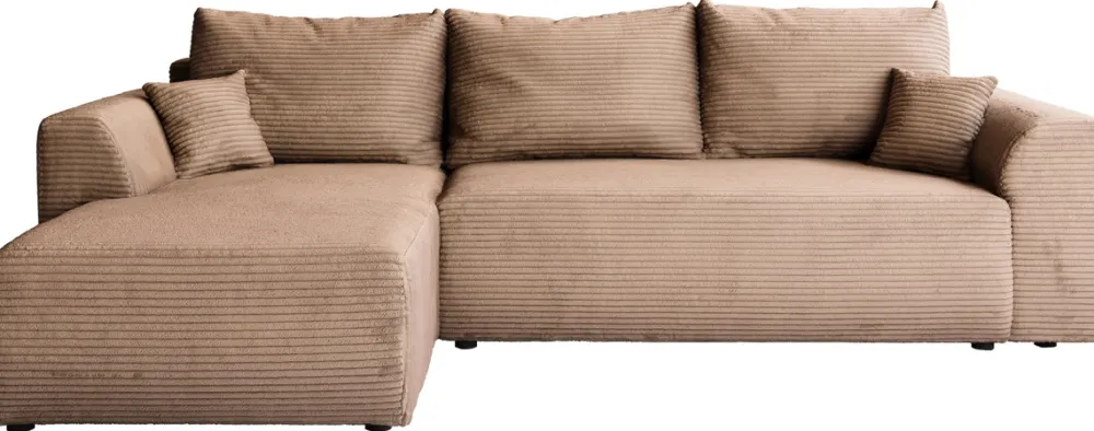 Obicie wykonane z tkaniny TOP sztruks nadaje narożnikowi wyjątkowego charakteru. Ten gruby sztruks wyróżnia się wyrazistą strukturą i miękkością w dotyku, zapewniając przyjemne doznania podczas codziennego użytkowania. Dzięki wysokiej odporności na ścieranie ROMEO przez lata zachowa swój elegancki wygląd, będąc doskonałym wyborem dla osób ceniących trwałość i styl.