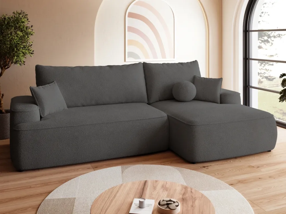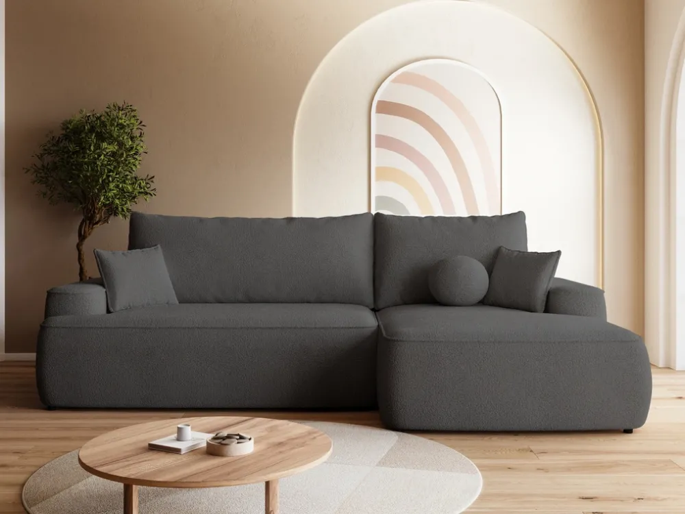Meble Dla Dzieci|Narożniki>BROMARKT Ciemnoszary rozkładany narożnik do salonu CARMELLO boucle