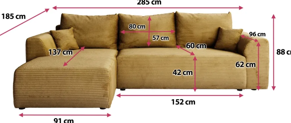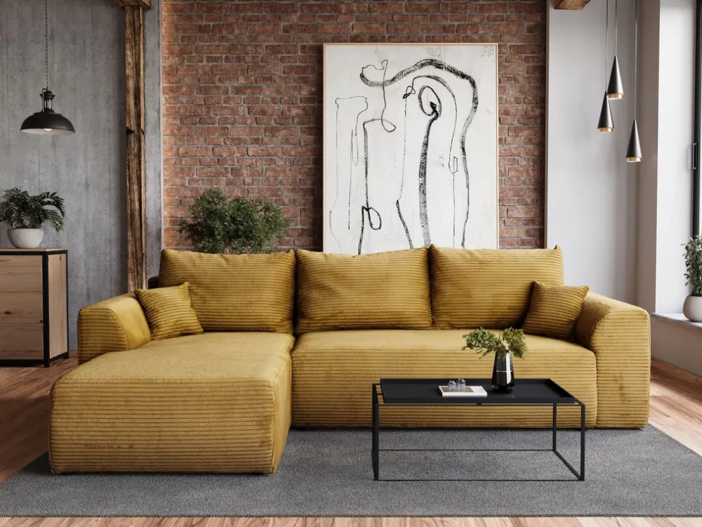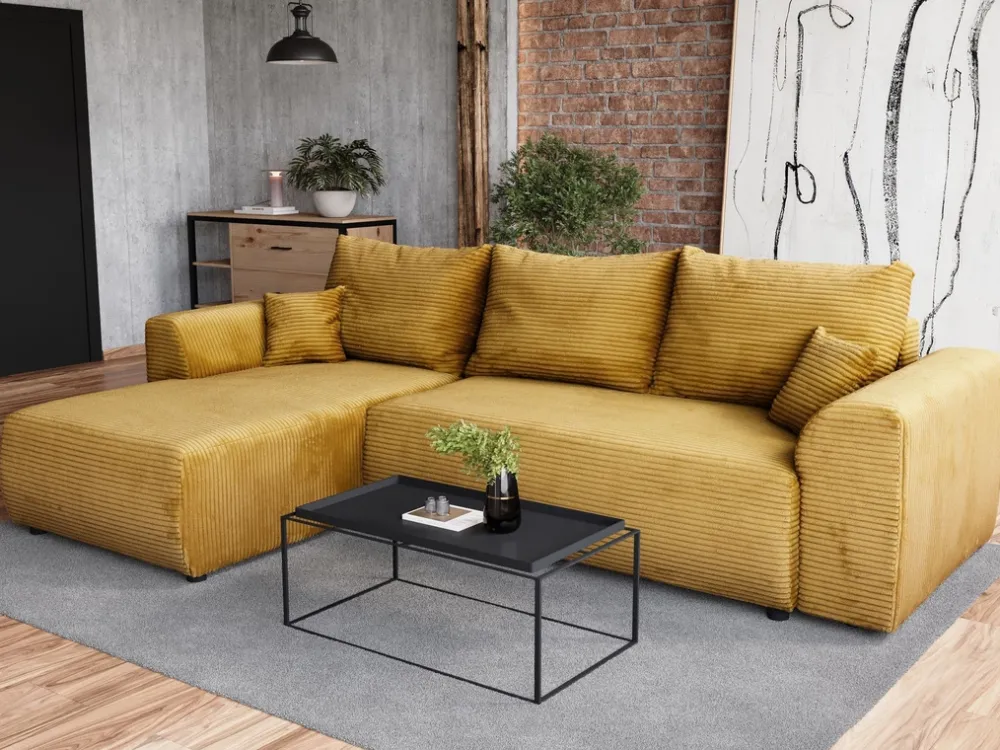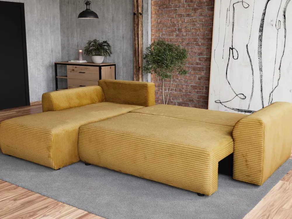 Meble Dla Dzieci|Narożniki>BROMARKT Musztardowa kanapa narożna z funkcją spania rozkładana do salonu ROMEO