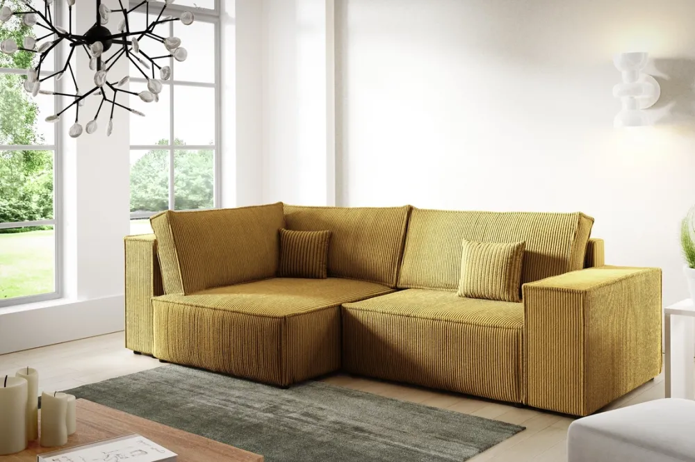 Wybierz rozkładany narożnik sztruksowy PEDRO DUO, aby każdy moment spędzony w salonie był synonimem relaksu i dobrego gustu. Ciesz się komfortem i funkcjonalnością, nie rezygnując przy tym ze stylowego wyglądu.