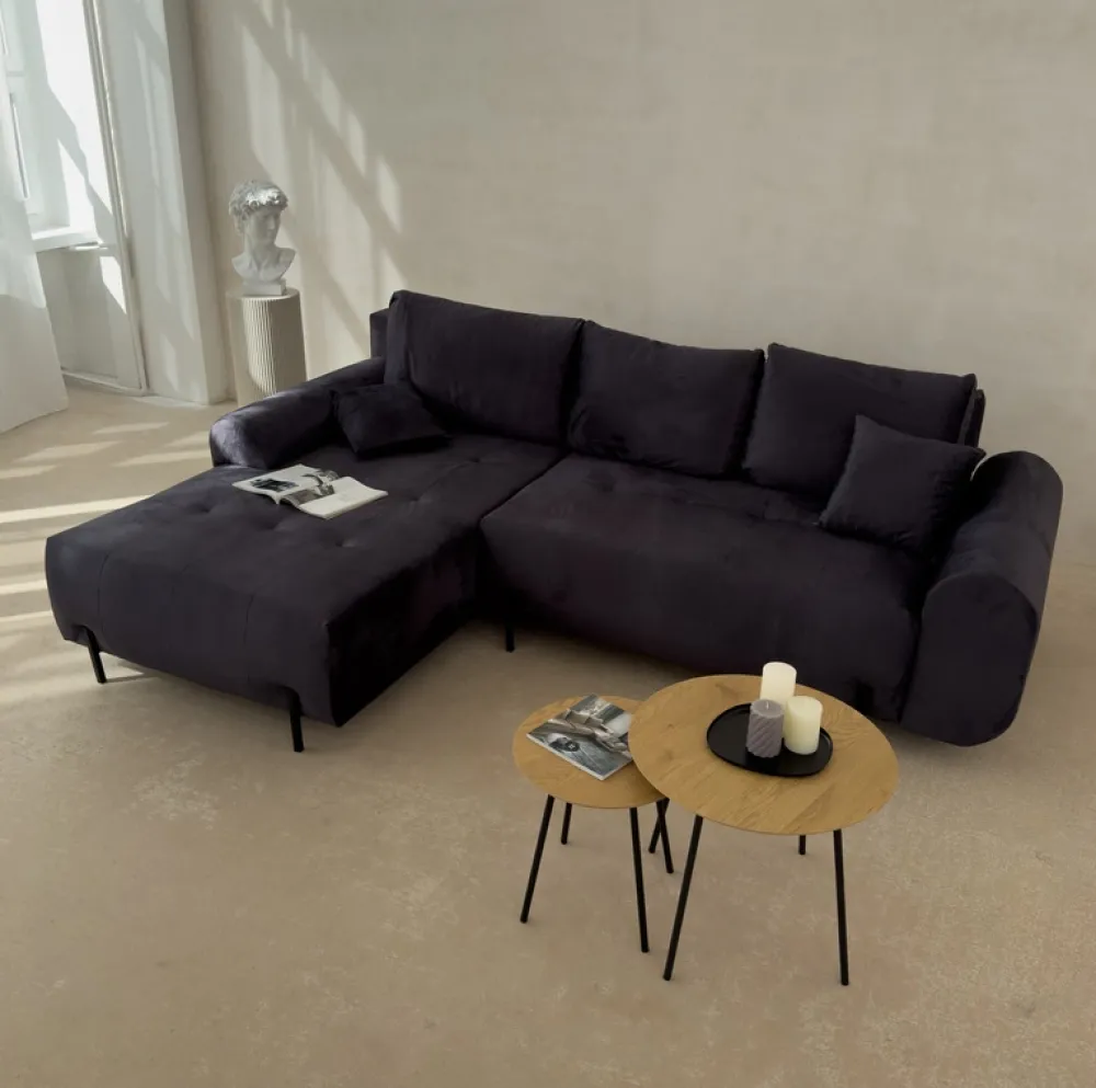 Narożnik posiada możliwość zmontowania w orientacji lewostronnej lub prawostronnej. Pozwala to na dostosowanie mebla do układu pomieszczenia, dzięki czemu podczas przemeblowania, wystarczy przełożyć wysuniętą część narożnika na drugą stronę, aby idealnie wpasowywał się w aranżacje.
