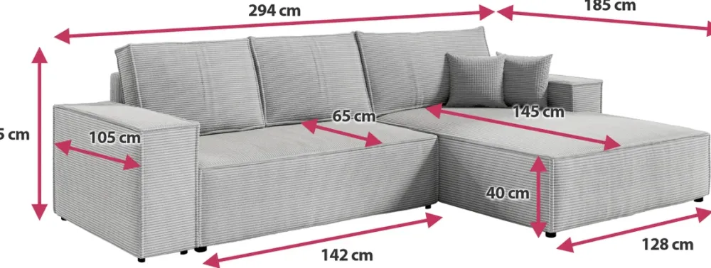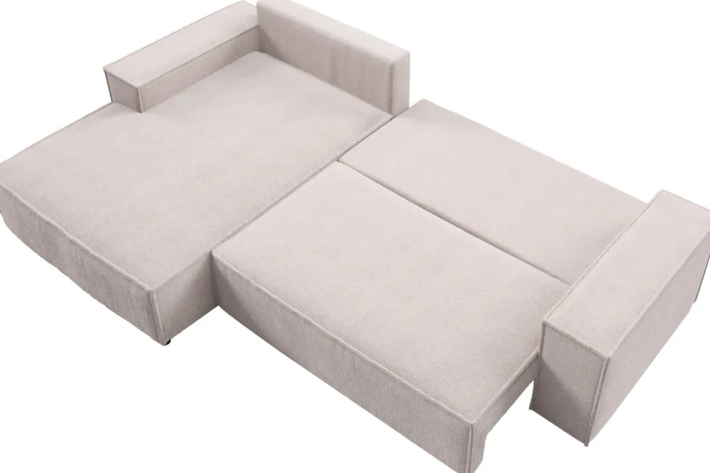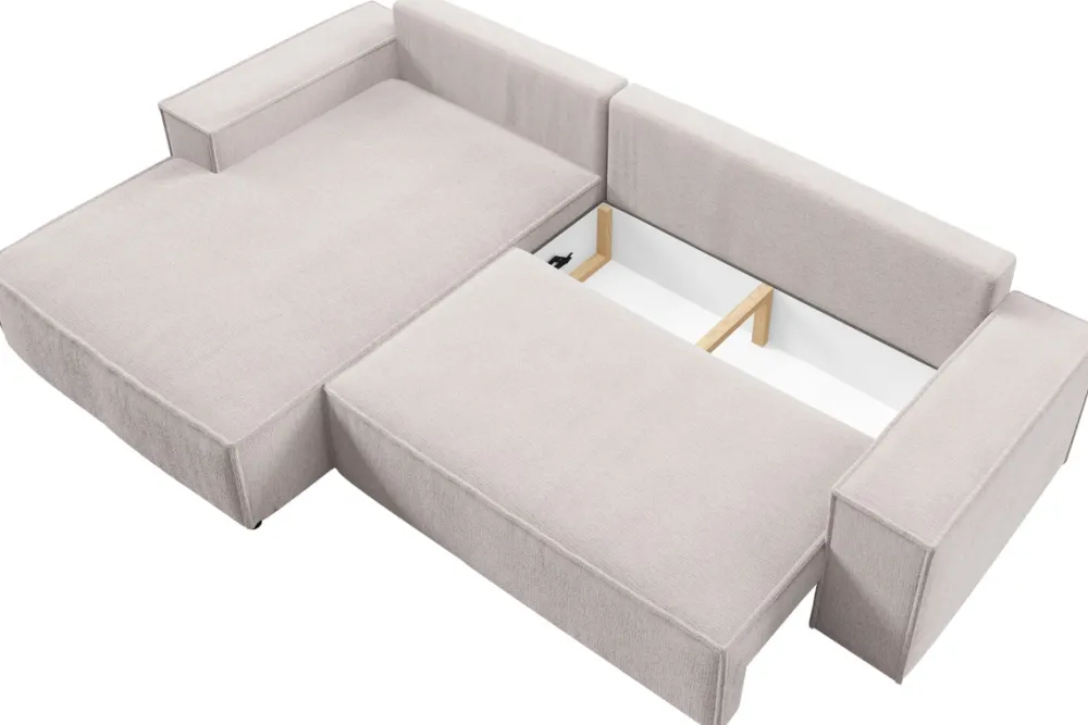 - Narożnik posiada głęboki pojemnik na pościel, idealny do przechowywania poduszek, koców oraz innych akcesoriów tekstylnych.