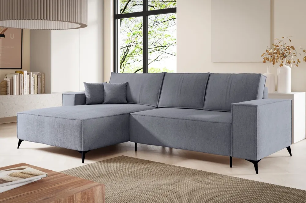 Meble Dla Dzieci|Narożniki>BROMARKT Rozkładany narożnik szary do salonu na nóżkach z funkcją spania APOLLO