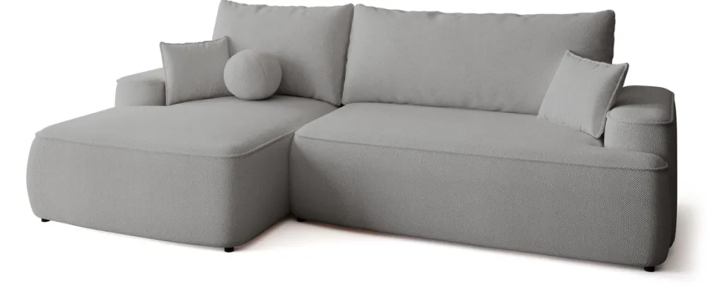 Rozkładana powierzchnia spania sprawia, że narożnik jest idealnym rozwiązaniem do mniejszych mieszkań lub salonów, w których liczy się każdy metr przestrzeni. Wbudowany pojemnik na pościel pozwoli Ci szybko schować koce i poduszki, zachowując porządek bez wysiłku.