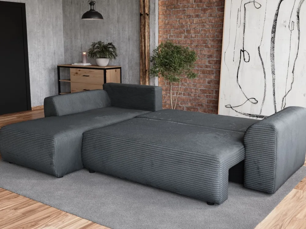 Meble Dla Dzieci|Narożniki>BROMARKT Szary narożnik rozkładany do salonu z funkcją spania sztruksowy ROMEO