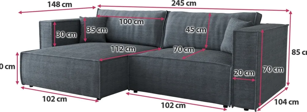 Meble Dla Dzieci|Narożniki>BROMARKT Sztruksowa rogówka z funkcją spania do salonu MIZARU
