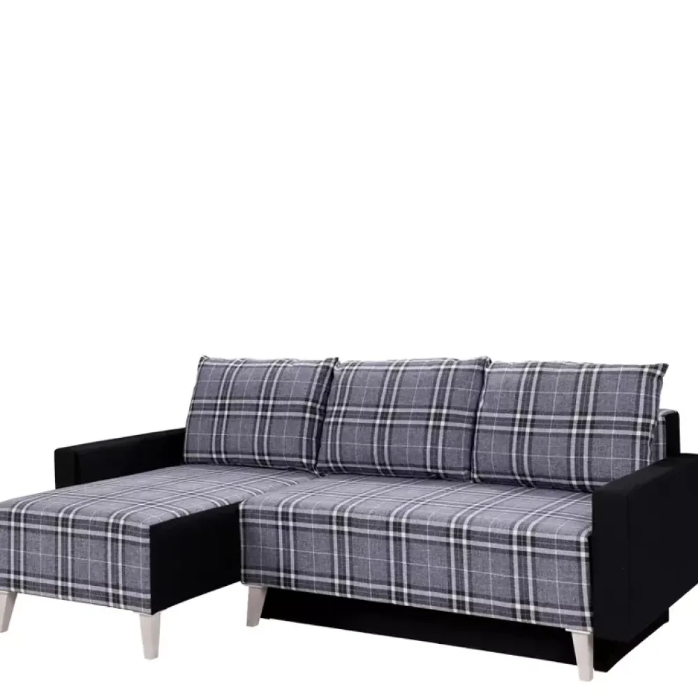 - Uniwersalny narożnik do salonu. Wykonany z dwukolorowej kompozycji tkanin, boczki oraz skrzynia wykonana jest z tkaniny Gomez 12. Tkaninę na poduszki oraz siedziska wybrać można w naszym konfiguratorze!