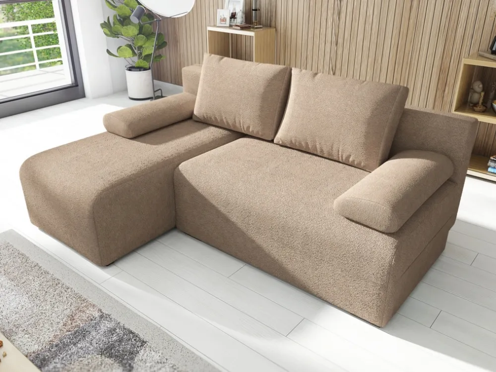 Narożnik boucle ERNEST idealnie wpisuje się w aktualne trendy wnętrzarskie. Z funkcją spania o powierzchni 138×200 cm, stanowi doskonałe rozwiązanie zarówno do codziennego wypoczynku, jak i okazjonalnych noclegów dla gości. Jego minimalistyczna forma, połączona z praktycznymi rozwiązaniami, sprawi, że Twój salon zyska nowoczesny wygląd, zachowując pełną funkcjonalność.