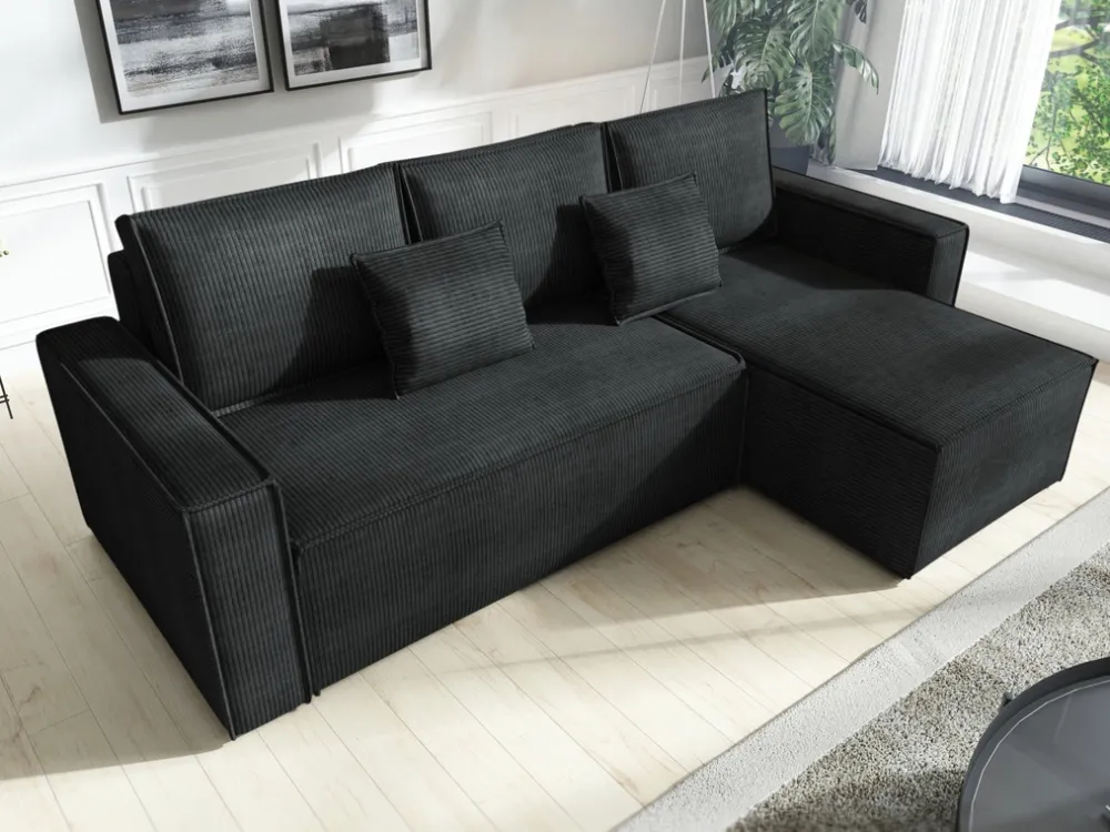 - Sztruksowy narożnik DEXTER posiada funkcję spania o wymiarze 138×200 cm, która pozwala na okazjonalny sen dla gości. Pod siedziskiem znajduje się głęboki pojemnik na poduszki i koce. Narożnik jest dostępny w wielu atrakcyjnych kolorach.