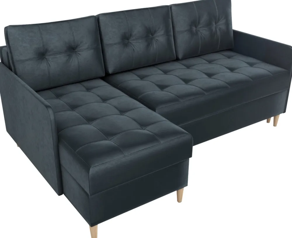 - Mebel posiada pojemnik na pościel pod siedziskiem, umożliwiający przechowywanie poduszek, koców oraz innych akcesoriów, co zwiększa jego funkcjonalność.