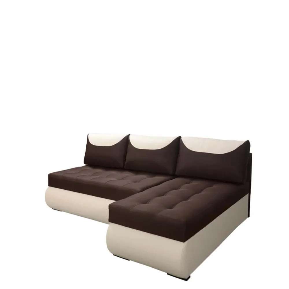 - Nowoczesny narożnik z funkcją spania do niewielkich pomieszczeń, kawalerek lub małych mieszkań. Subtelne pikowania na siedziskach w połączeniu z dwukolorowymi poduszkami z przeszyciem nadają całej konstrukcji świetnego stylu.