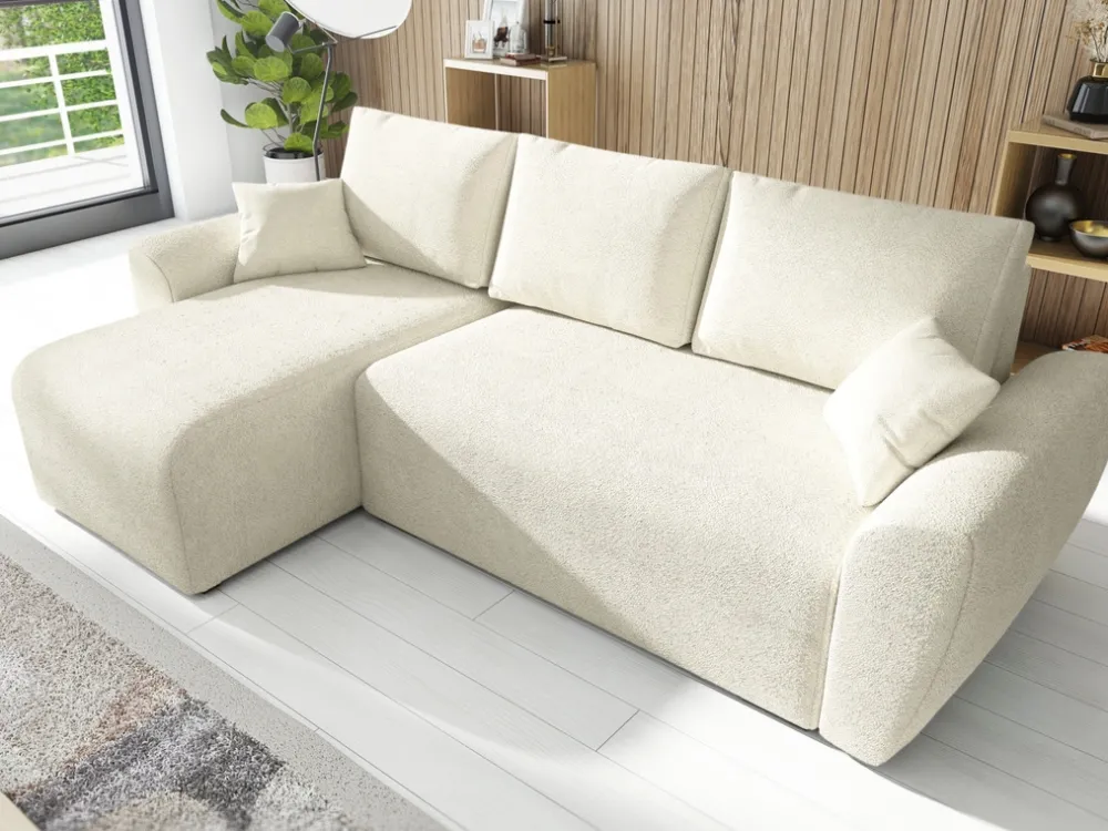 - Narożnik z funkcją spania ROTTERDAM został wykonany w tkaninie typu baranek. Funkcja spania o powierzchni 138×200 cm pozwala na okazjonalny sen. Pod siedziskiem znajduje się głęboki pojemnik na poduszki i pościel. Narożnik posiada wiele dostępnych kolorów