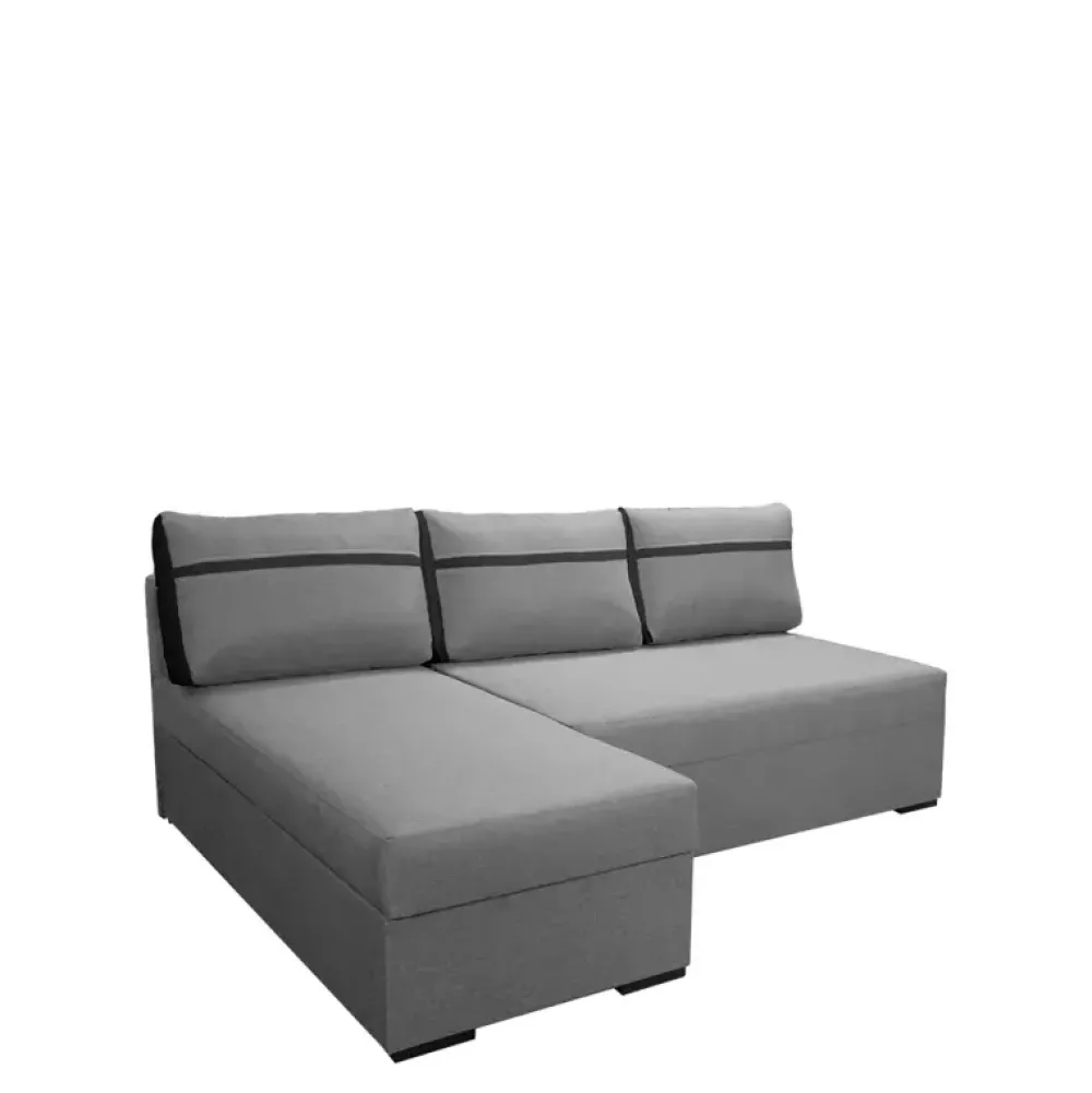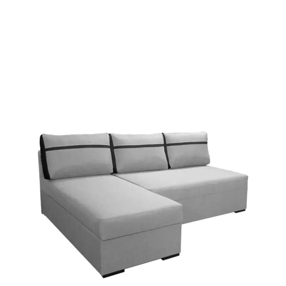 - W wersji standardowej narożnik rozkładany jest „na kółkach”, dopłacając do wersji z mechanizmem „DL”, otrzymują państwo dodatkowy obszerny pojemnik na pościel umieszczony pod wysuniętą leżanką, a także mechanizm, który ochroni waszą podłogę przed ewentualnymi uszkodzeniami.