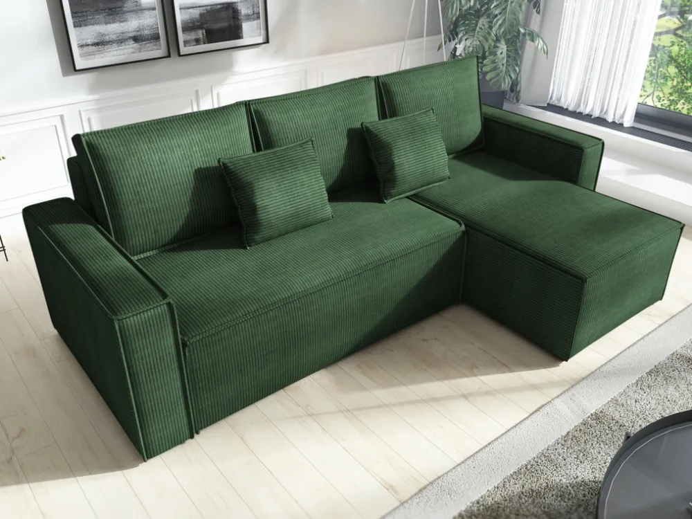 Narożnik sztruksowy DEXTER to połączenie nowoczesnego designu z praktycznymi funkcjami, które idealnie wpisują się w potrzeby współczesnych wnętrz. Z funkcją spania o powierzchni 138×200 cm, jest doskonałym rozwiązaniem zarówno do codziennego relaksu, jak i przyjmowania gości na noc. Jego minimalistyczna forma i estetyczny wygląd wprowadzą do Twojego salonu nowoczesny akcent, jednocześnie zapewniając pełen komfort.