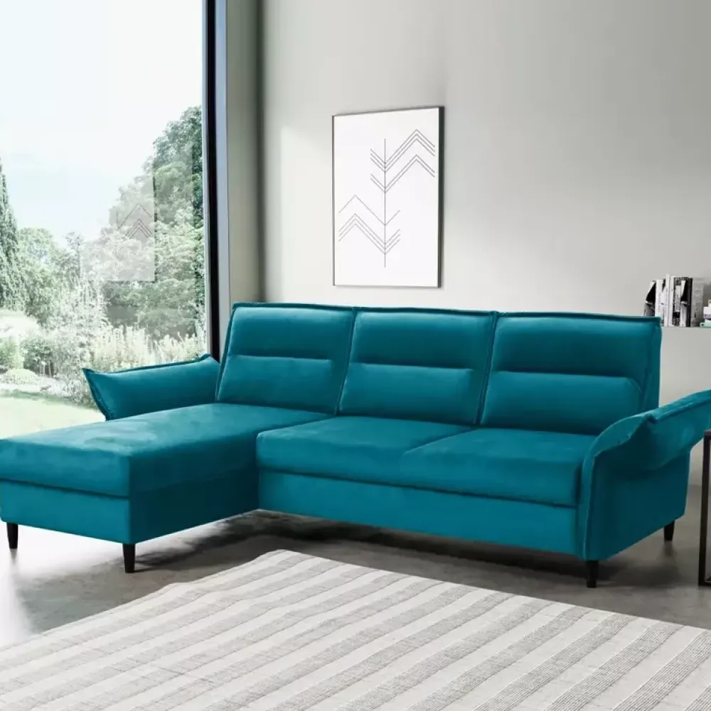 - Rozkładany narożnik ITALIA wyposażony w funkcję spania wraz z pojemnikiem na pościel. Automat wspomagający rozkładanie, tył łóżka obity wybraną tkaniną, a także podłokietniki z regulacją to niewątpliwie duże zalety tego modelu.