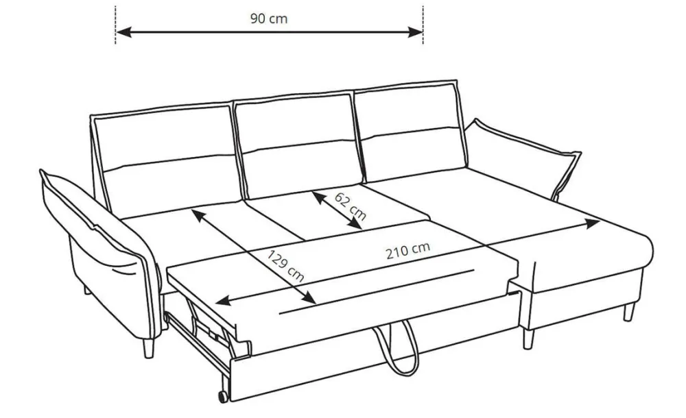 - Funkcja spania o wymiarach 129 × 210 cm.