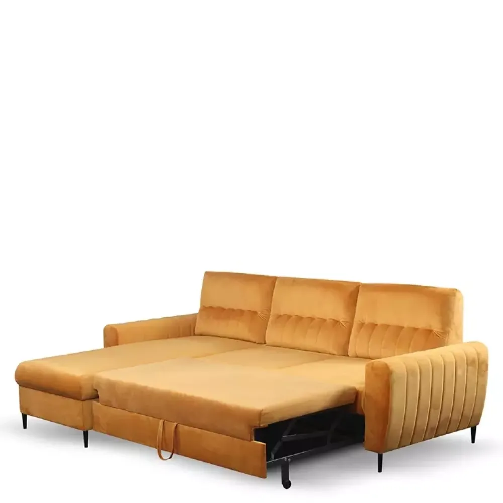 - Musztardowe narożniki z funkcją spania cieszą się coraz większą popularnością. Tobie też się podoba?