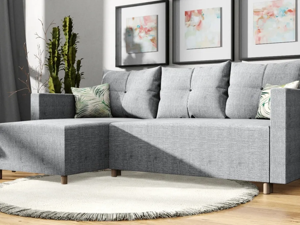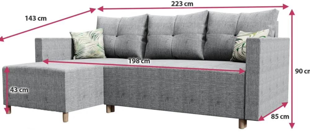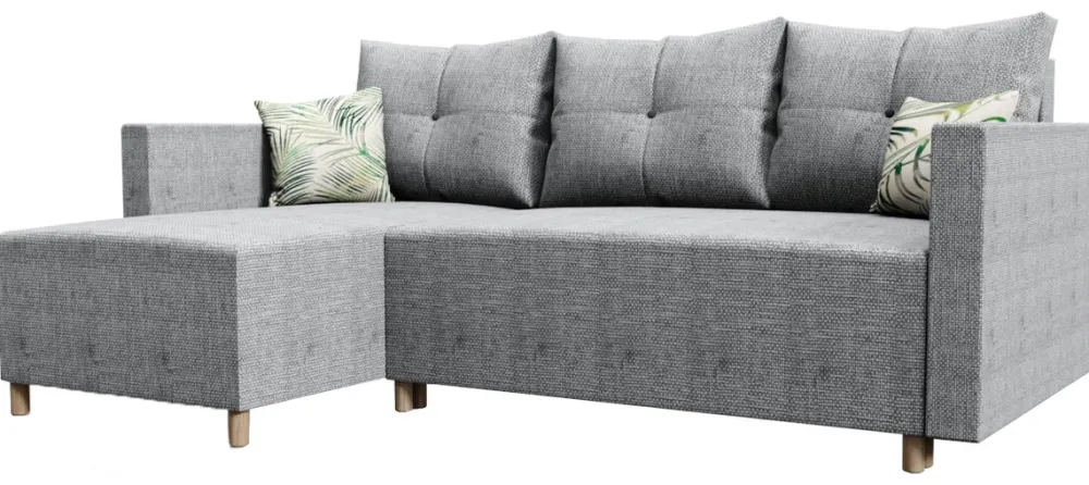 Praktyczność spotyka się z wygodą dzięki wbudowanemu pojemnikowi na pościel, który oferuje dodatkową przestrzeń do przechowywania, pomagając utrzymać porządek w Twoim salonie. Co więcej, narożnik ten zaprojektowano z myślą o elastyczności, oferując możliwość montażu zarówno prawo-, jak i lewostronnego, co pozwala na idealne dopasowanie do każdego wnętrza.