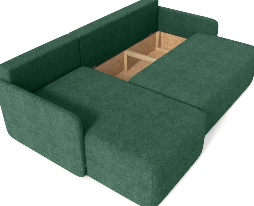 - Mebel posiada pojemnik na pościel pod siedziskiem, umożliwiający przechowywanie poduszek, koców oraz innych akcesoriów, co zwiększa jego funkcjonalność.