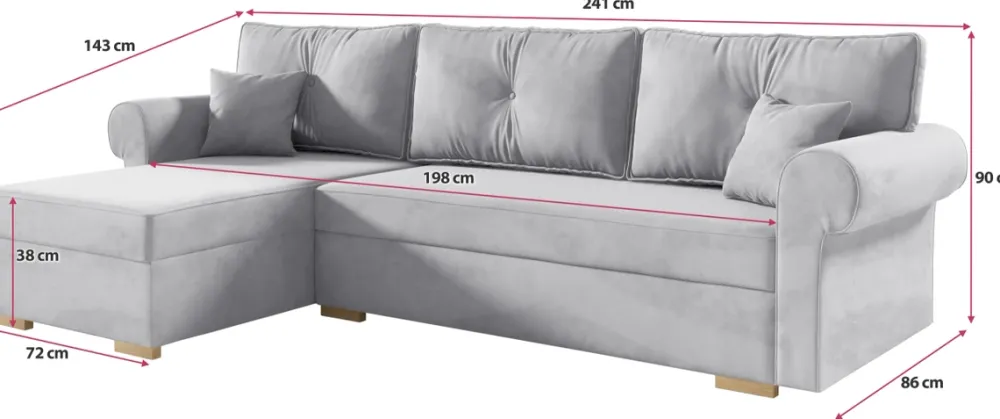 - Narożnik posiada głęboki pojemnik na pościel, umożliwiając Państwu przechowanie poduszek, koców oraz rozmaitych akcesoriów.