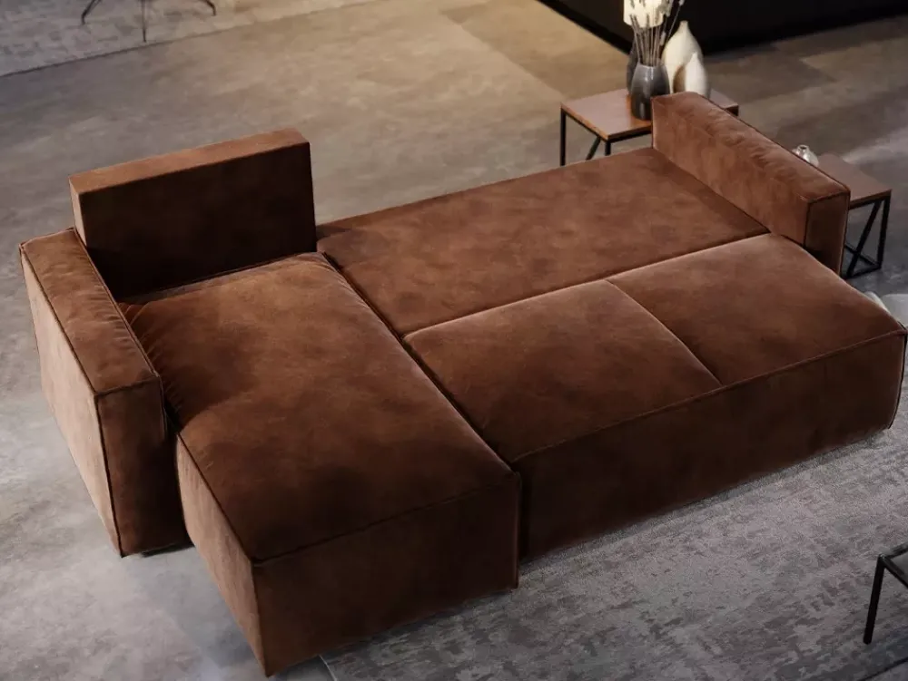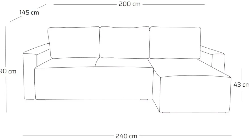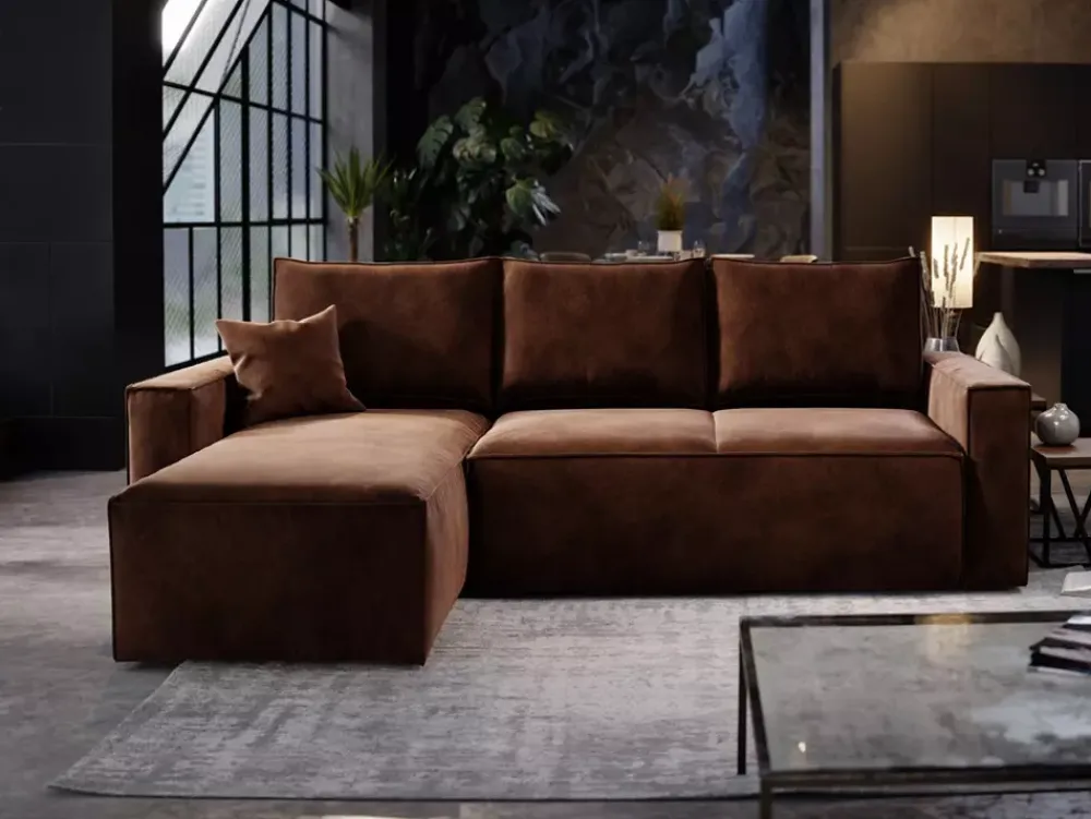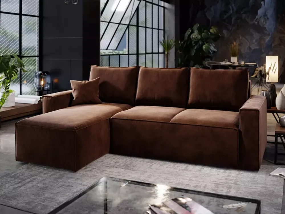 - Tapicerowane plecy czynią narożnik wolnostojącym, co oznacza, że może stać nawet pośrodku salonu.