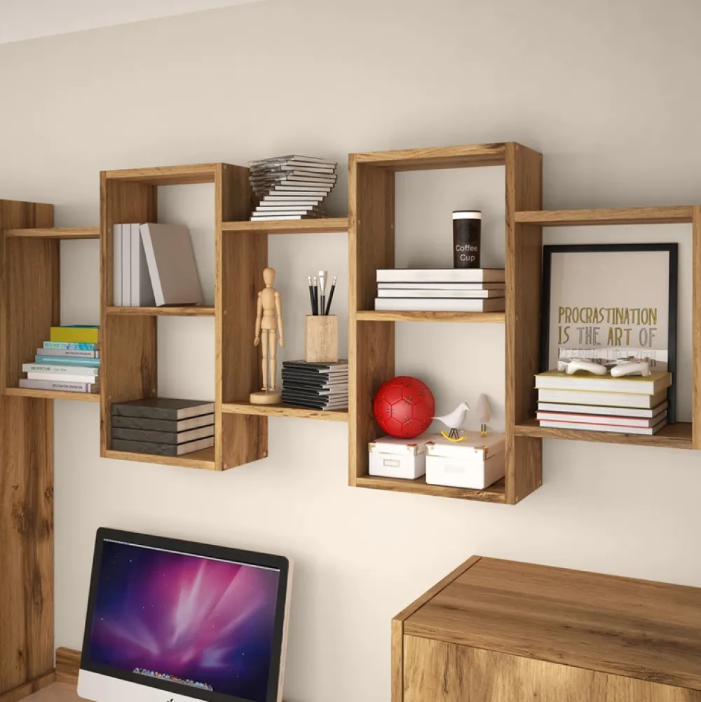 Pusta przestrzeń na ścianach w pokoju dziennym to idealne miejsce, by zgromadzić zdjęcia, książki i rodzinne pamiątki w jednym miejscu, na półkach z kolekcji TROIS.
