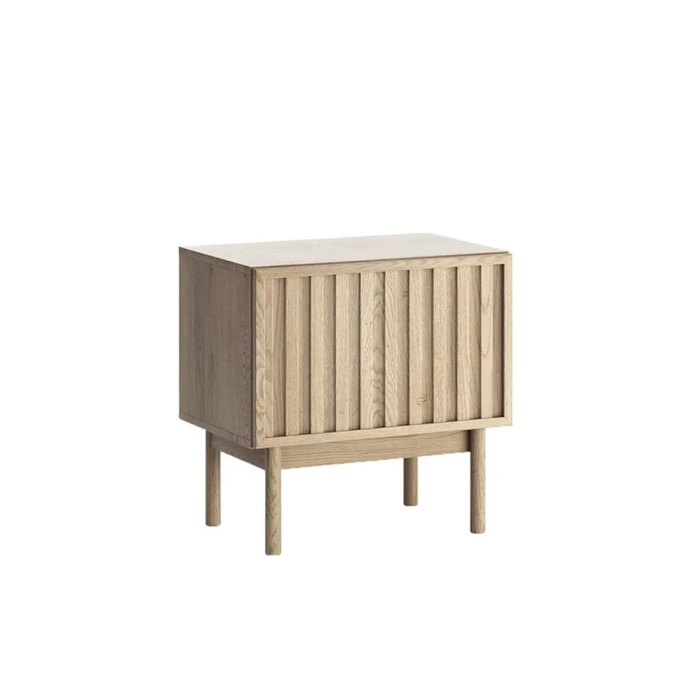 SOLVO to nie tylko stolik nocny do sypialni, ale również stylowy dodatek, który podkreśli charakter wnętrza. Dzięki bezuchwytowemu systemowi push to open, korzystanie z mebla jest niezwykle intuicyjne i wygodne. Ryflowane wykończenie frontu przyciąga wzrok i dodaje głębi aranżacji, a naturalny odcień dębu cremona ociepla przestrzeń.