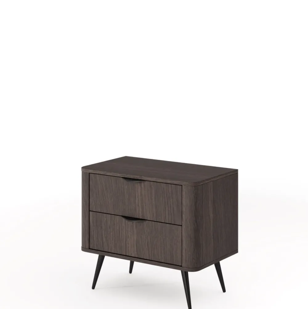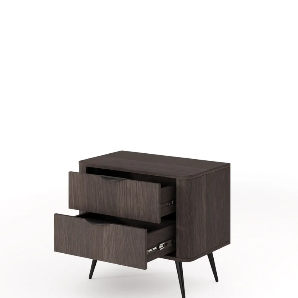 Szafka nocna dąb dunin VALIO to esencja nowoczesnej elegancji w kompaktowej formie. Jej subtelnie zaokrąglone krawędzie, ciepły odcień drewna i czarne, metalowe nóżki tworzą spójną kompozycję, która świetnie komponuje się z nowoczesnymi i loftowymi wnętrzami. Dwie pojemne szuflady pozwalają uporządkować drobiazgi, które warto mieć zawsze pod ręką – od książki po ładowarkę.