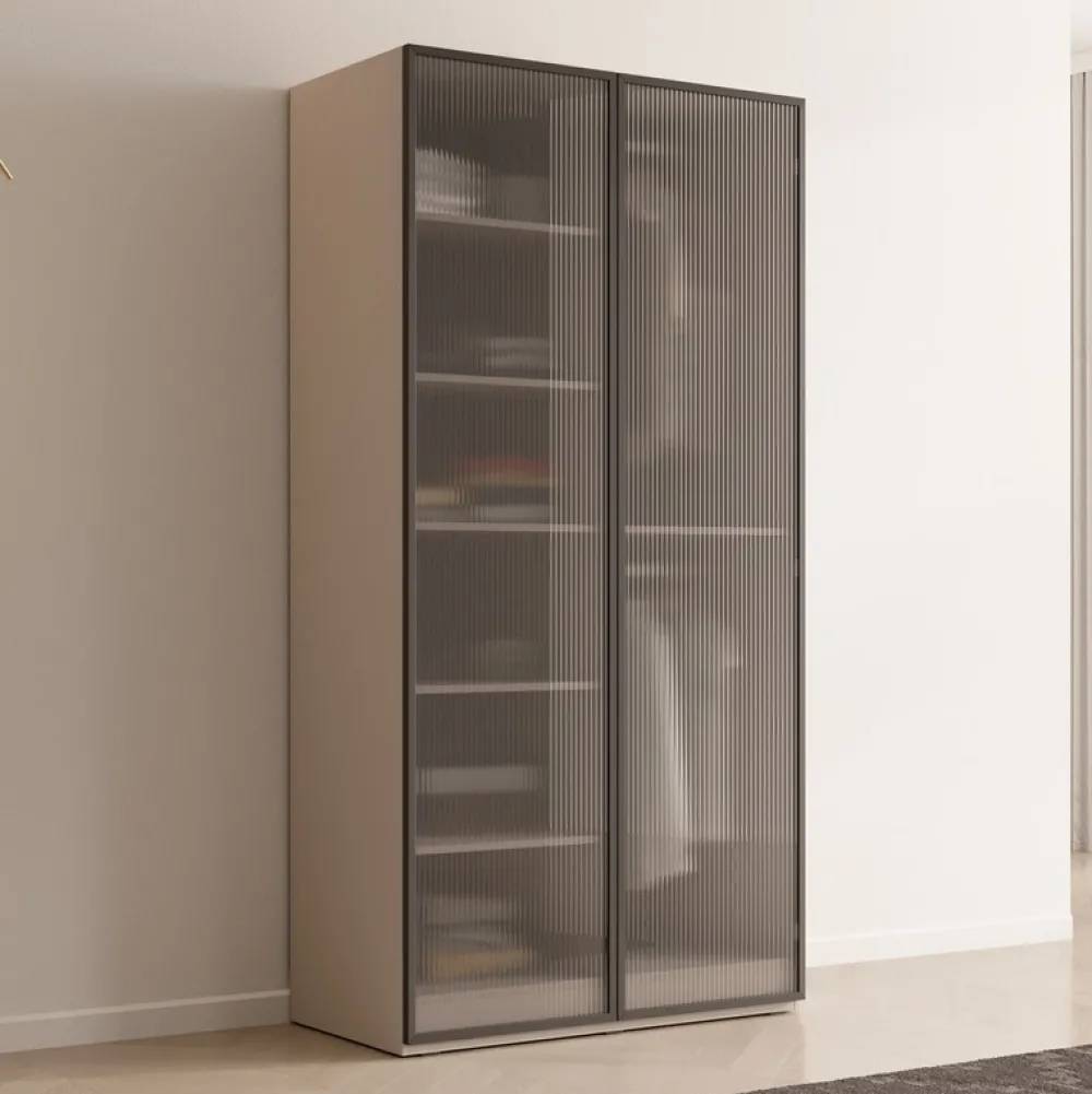 Wnętrze szafy SIGMA zaprojektowano z myślą o wygodnym przechowywaniu i estetyce. Przestronne półki i drążki pozwalają na zachowanie idealnego porządku, a transparentny front eksponuje ulubione elementy garderoby. Nowoczesne detale i dbałość o wykończenie czynią tę szafę wyjątkową zarówno pod względem formy, jak i funkcji.