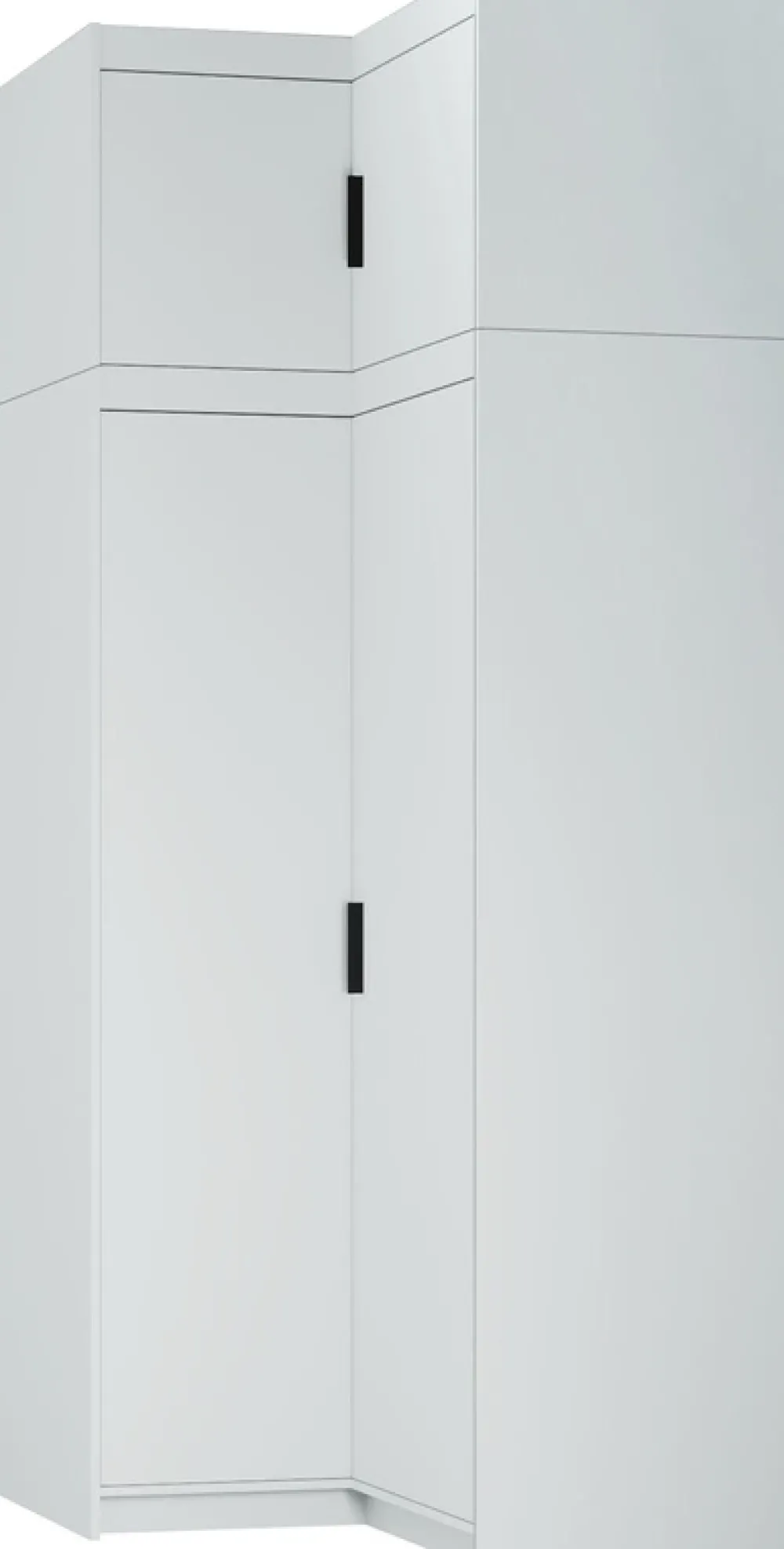 Zestaw narożny KUBA to idealne rozwiązanie dla osób, które chcą w pełni wykorzystać przestrzeń w narożnikach pomieszczeń, zachowując przy tym estetykę i funkcjonalność. W skład kompletu wchodzi dwudrzwiowa szafa narożna oraz dedykowana nadstawka – oba elementy wykończone w ciepłym dekorze biały, z nowoczesnymi, czarnymi uchwytami. To doskonała propozycja do sypialni, garderoby czy pokoju młodzieżowego.